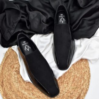 Nòz·ze – Black Suede Patent Square toe Belgian Slip On 274A