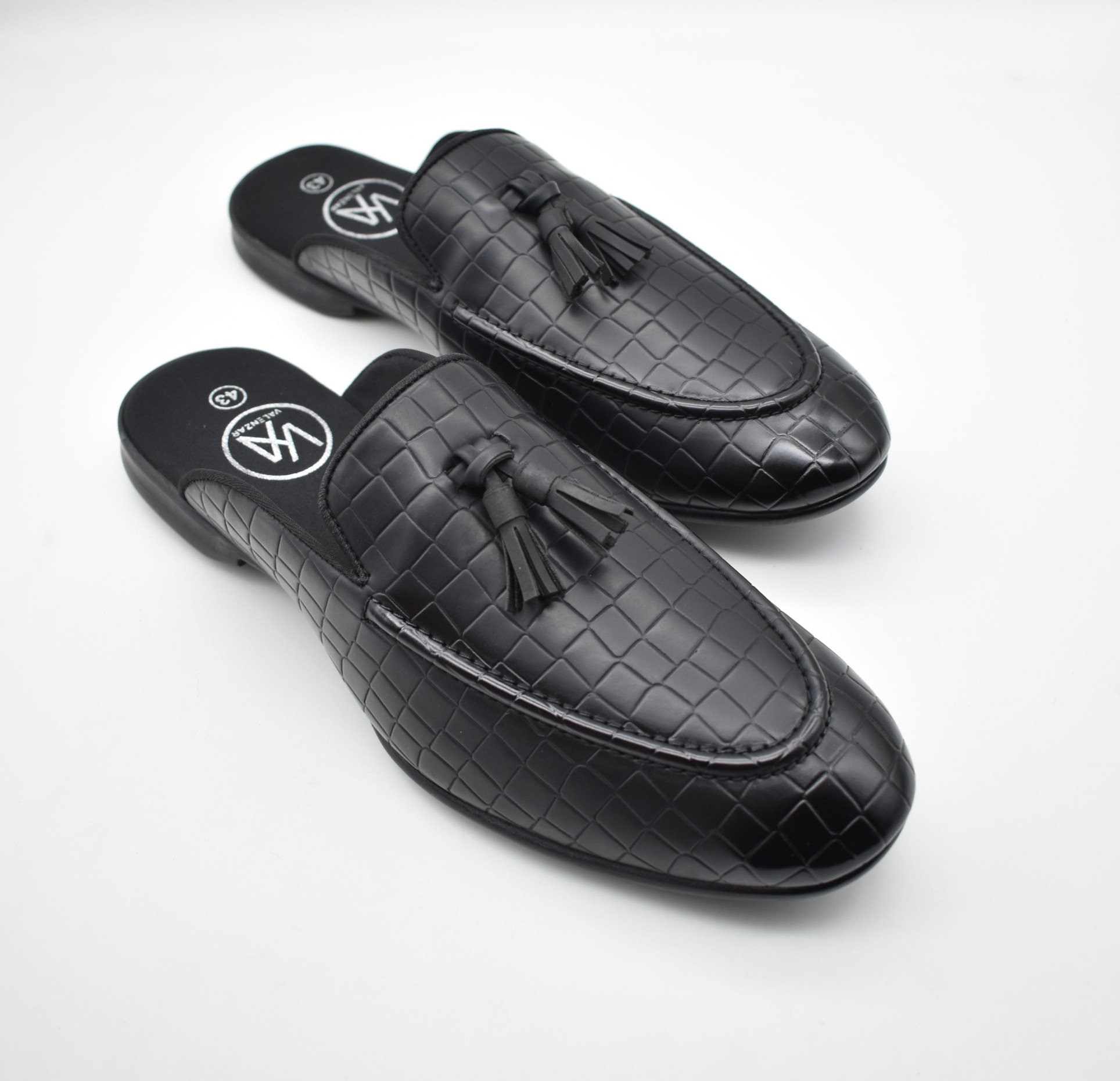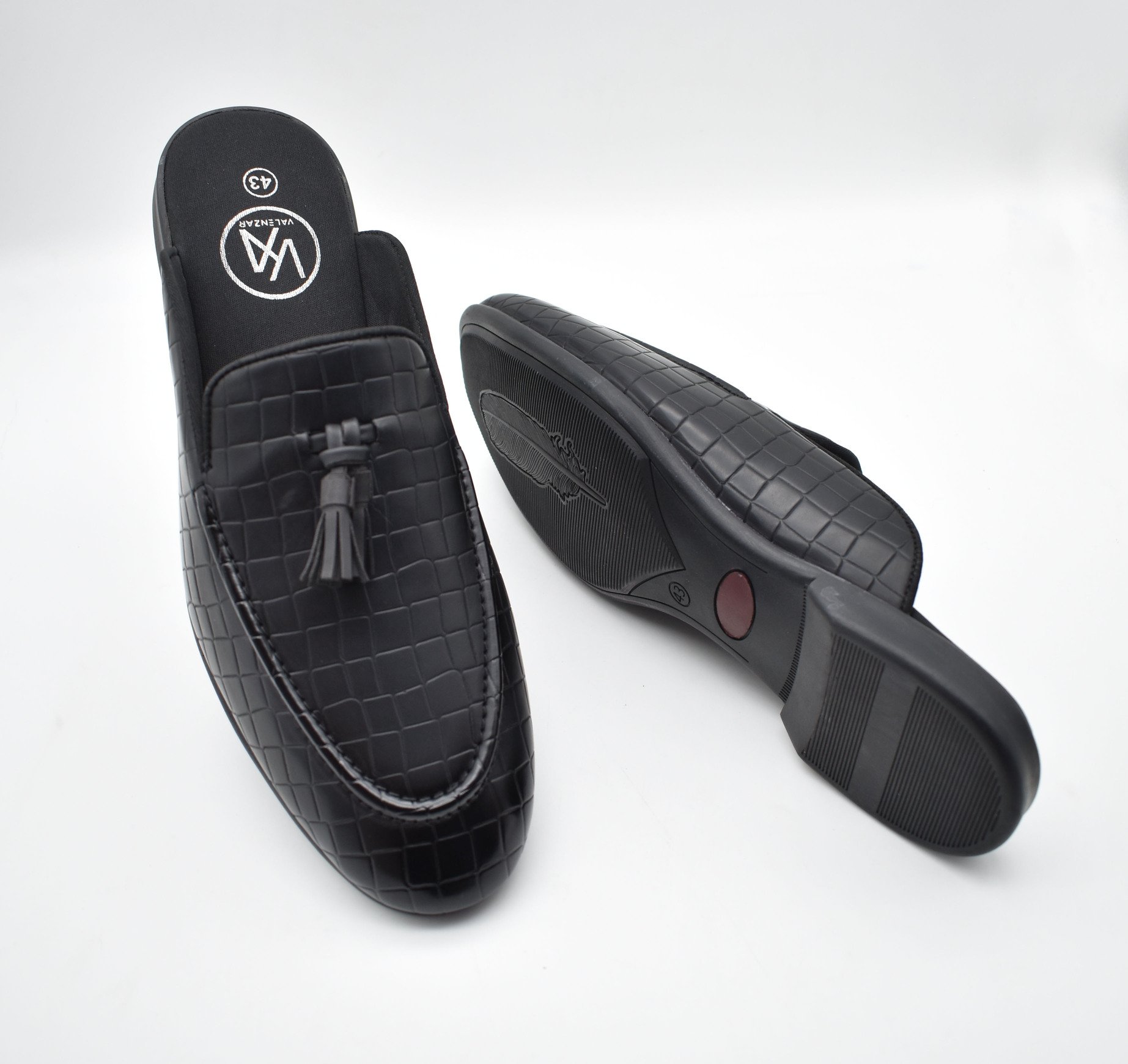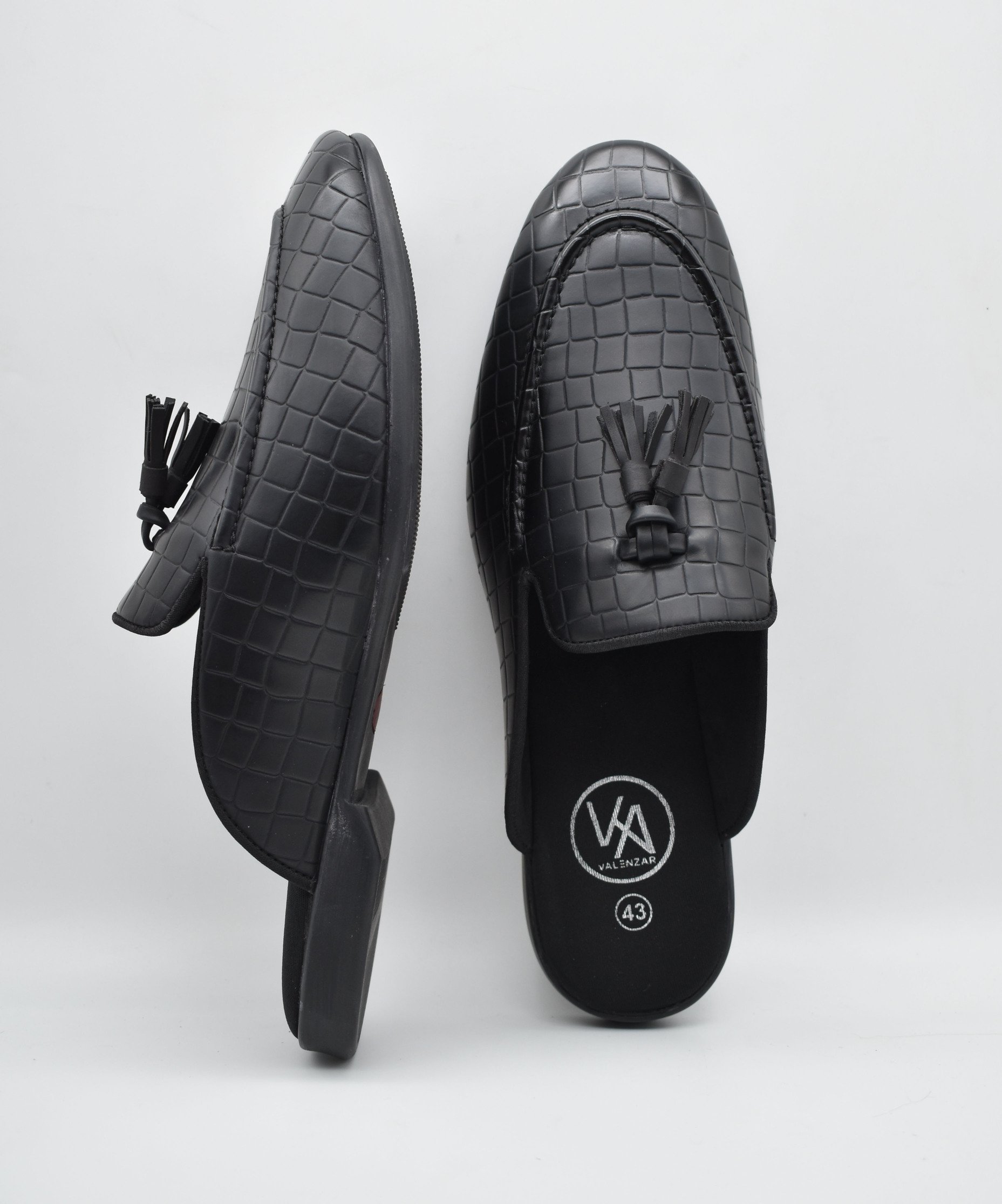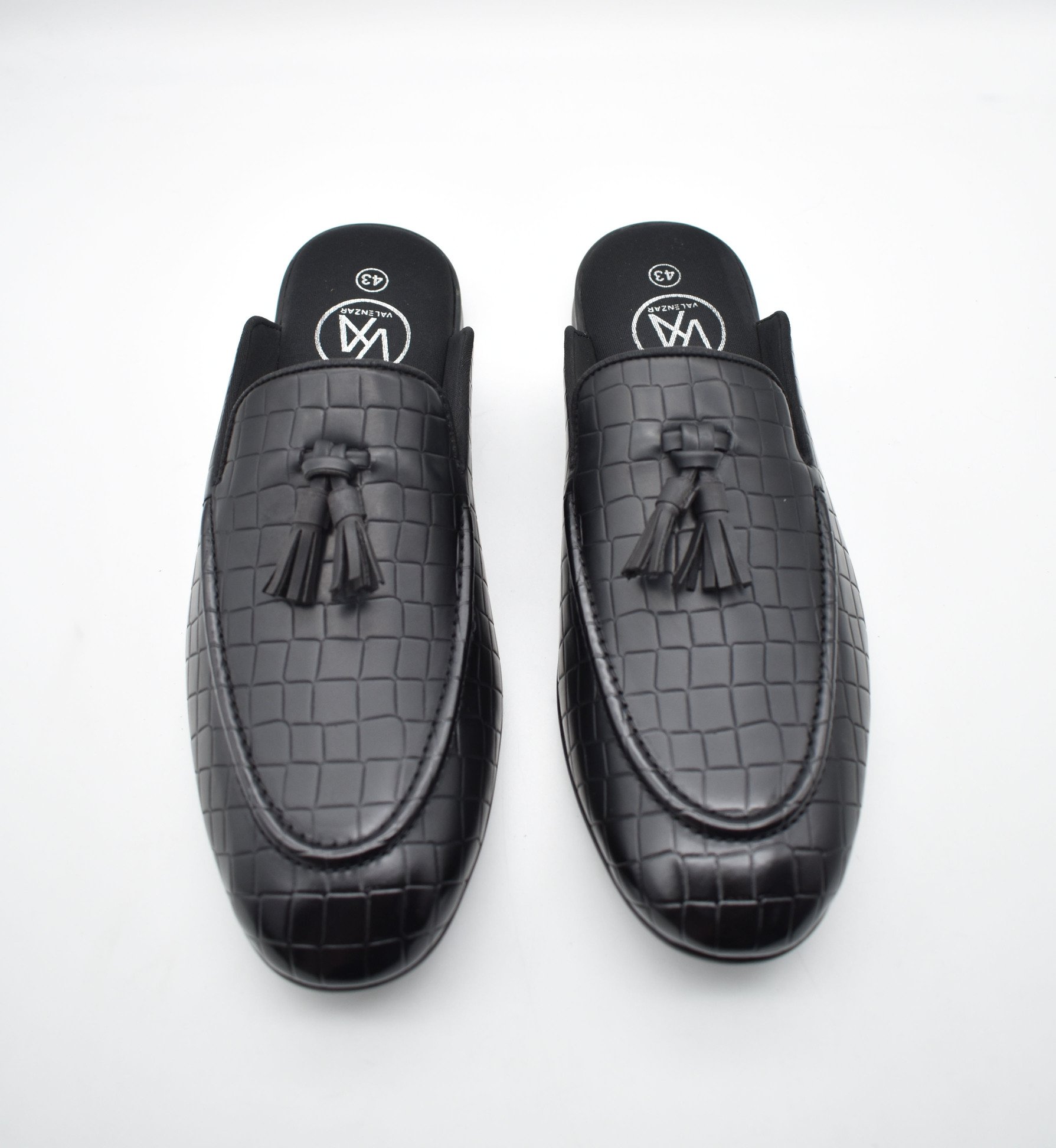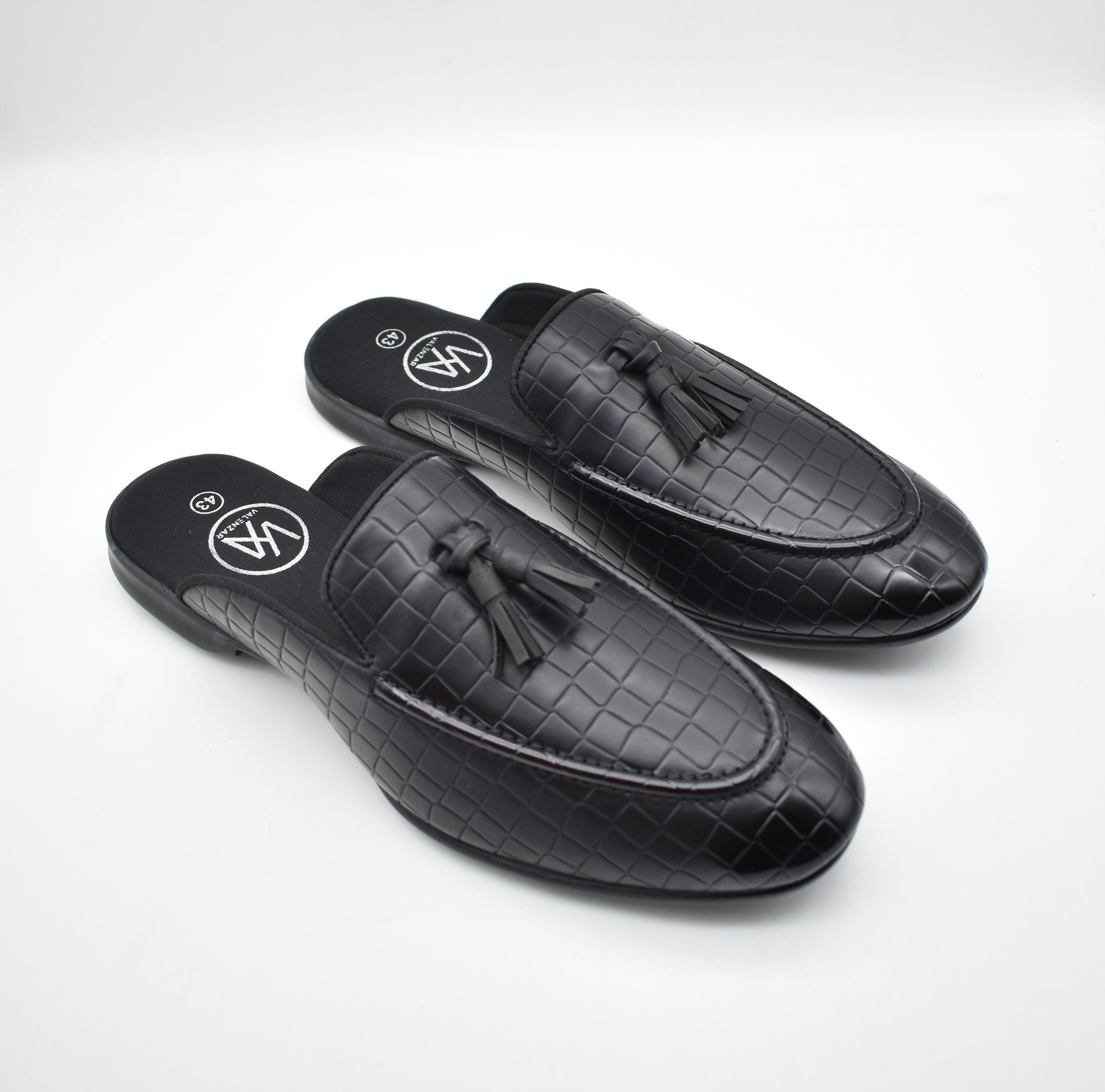 This Zeus Black Croco Tassel Mules features everything from accommodating style to casual wear. An extent of first-class advancements would be felt by you and assurance of our craftsmanship is merged with contemporary arrangement for a first-rate finish. The tassels mules styling gives these black men’s shoes a super-rich look. These black tassel mules for men are another of those eternal arrangements of shoes that portrays the custom fitted and very much prepped style of dress.